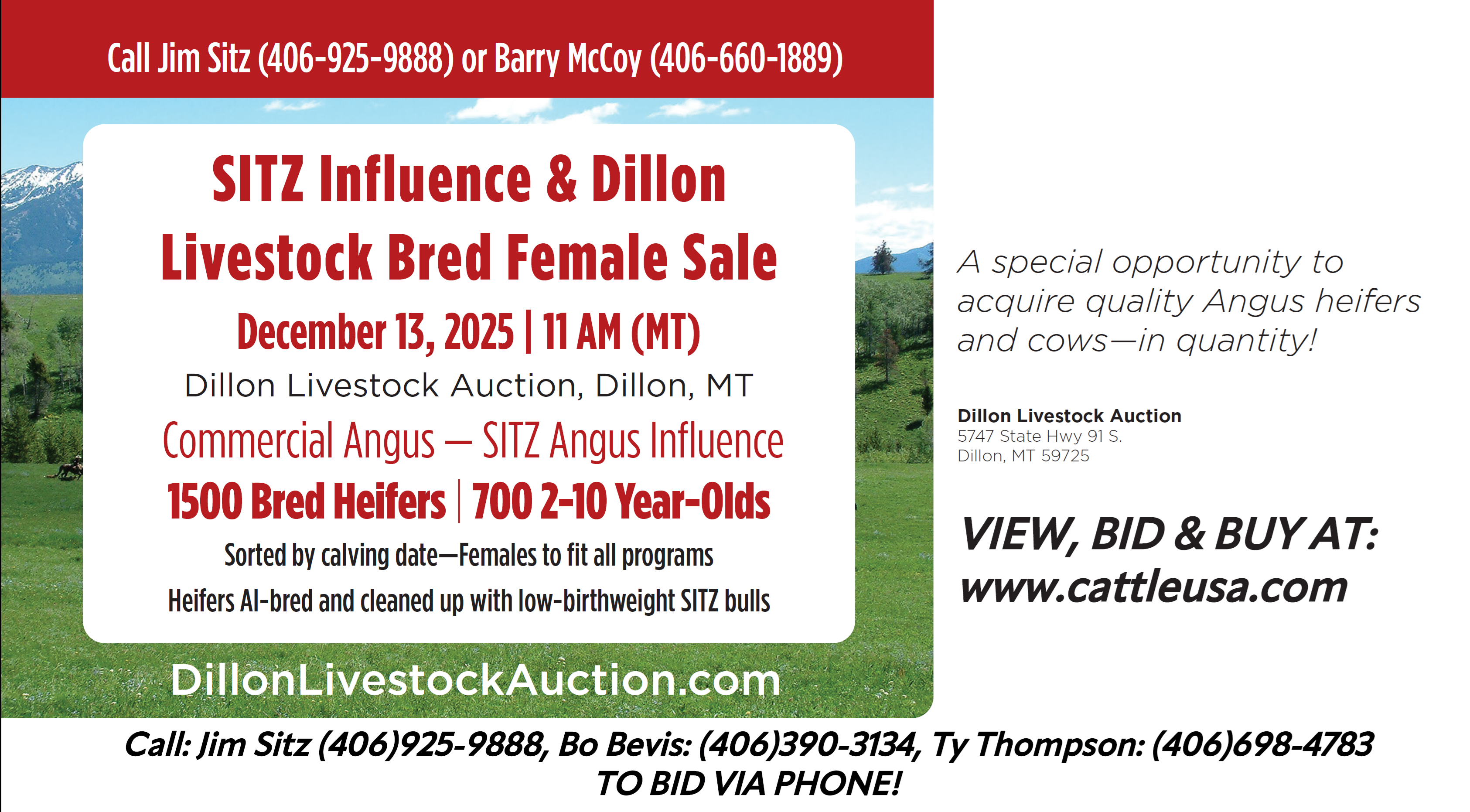 2025 Sitz Influence & Dillon Livestock Bred Female Sale